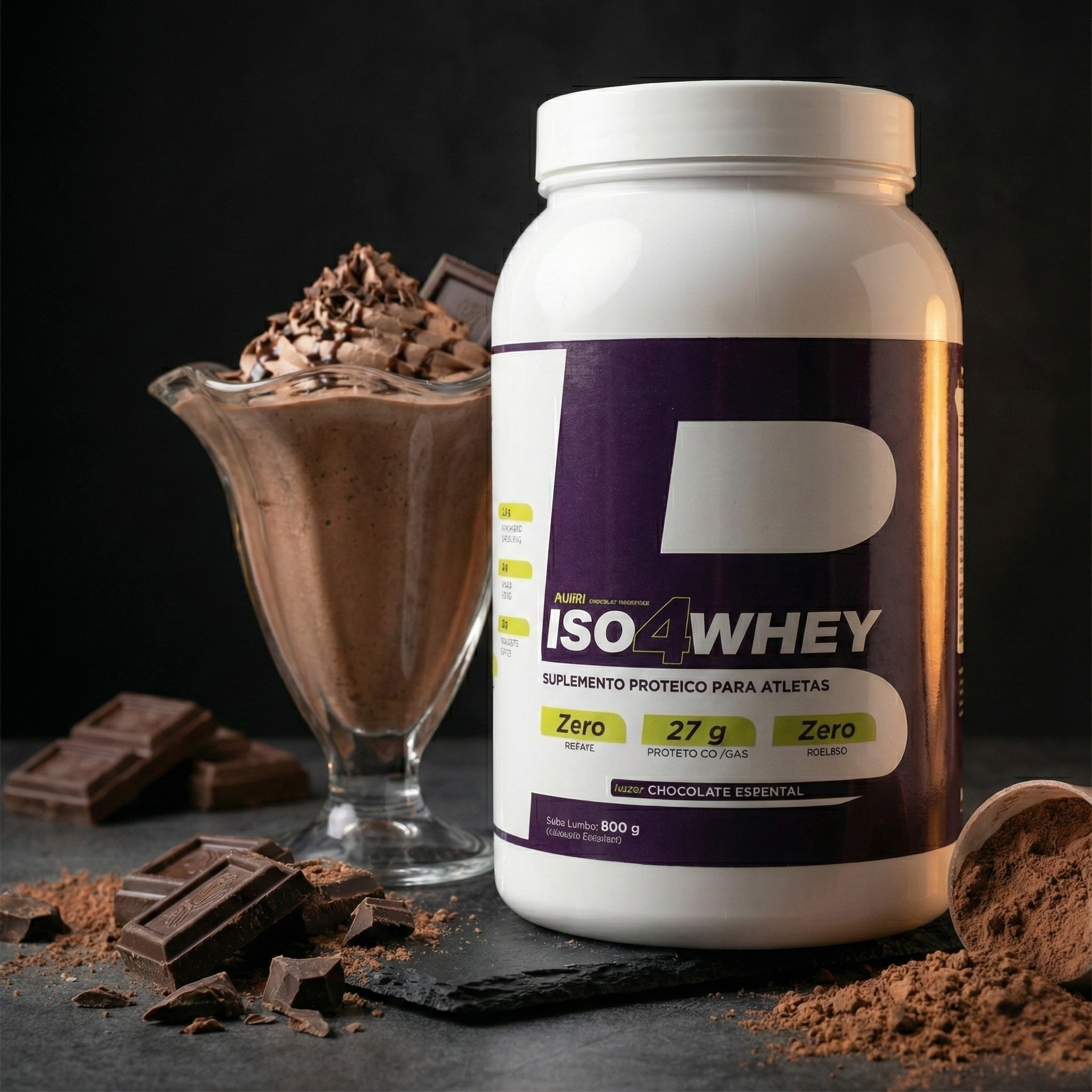 Formulado com proteína isolada do soro do leite zero lactose, ele entrega 27 g de proteína por dose, com zero açúcar e baixíssimo teor de gordura, no sabor Chocolate Especial.