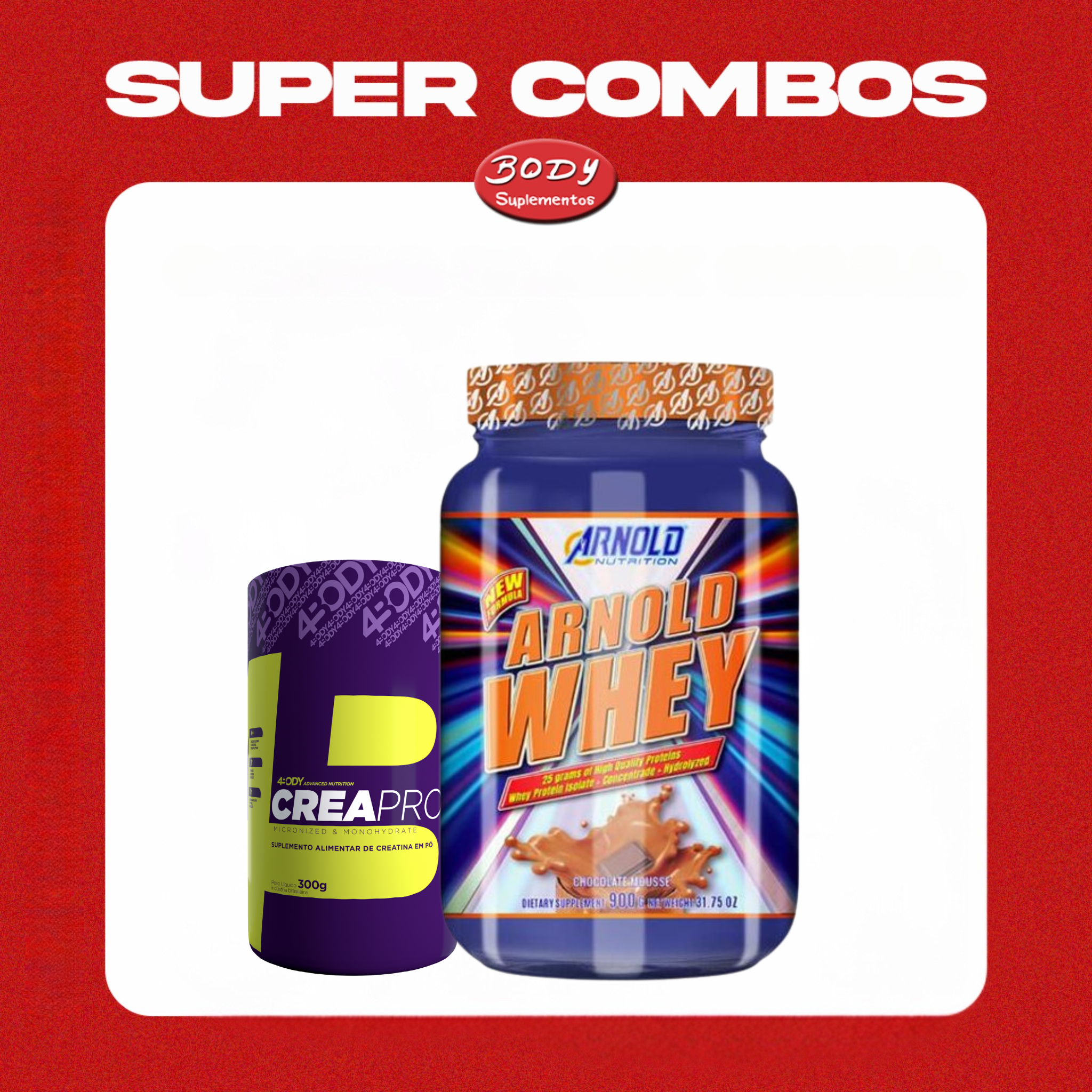 O Combo 100% Whey Arnold Nutrition + Creapro 4body 300g é uma escolha poderosa para quem quer resultados rápidos no ganho de massa muscular e melhoria de performance. Com a proteína de alta qualidade do Whey Arnold e a força da creatina, esse combo proporciona o suporte ideal para atletas e entusiastas de treino intenso. Adquira já e otimize seus treinos!
